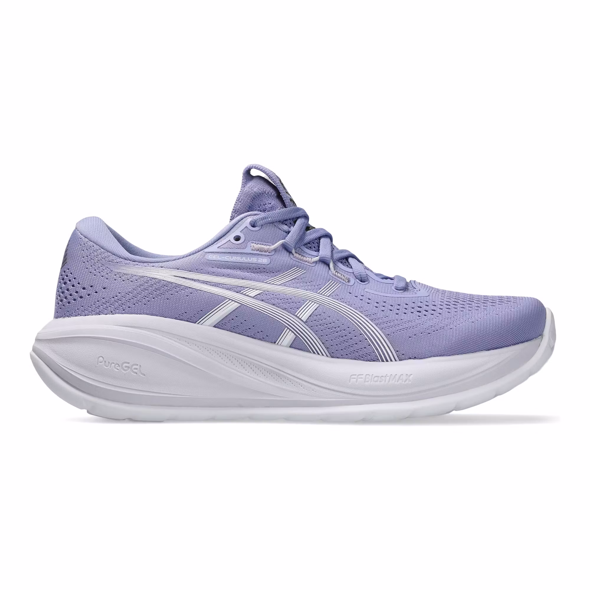 Asics Gel-Cumulus 28 W är en lätt och mjukt dämpad löparsko skapad för att ge en behaglig känsla under hela löpturen. FF BLAST MAX-mellansulan levererar en kombination av molnliknande landningar och responsiv energiåtergivning, vilket skapar ett löpsteg som både känns mjukt och effektivt. Mesh-ovandelen är konstruerad för att vara ventilerande och följsam, samtidigt som den minskar behovet av extra förstärkningar.