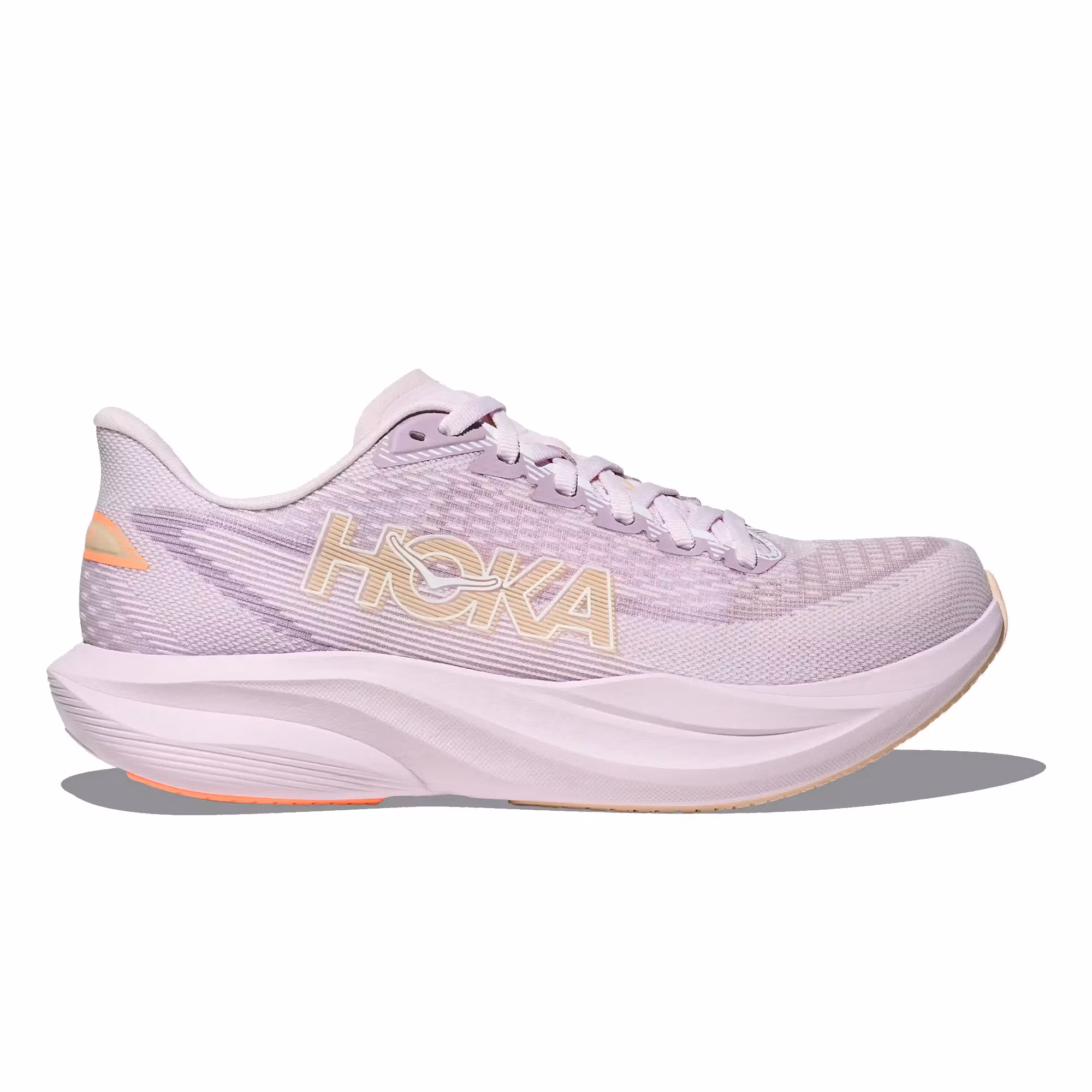 Den energifyllda mellansulan i superkritisk EVA ger en perfekt balans mellan stötdämpning och respons, vilket skapar ett effektivt frånskjut i varje steg. Samtidigt bidrar Hokas karakteristiska rocker-geometri till en mjuk och smidig övergång från isättning till avstamp.