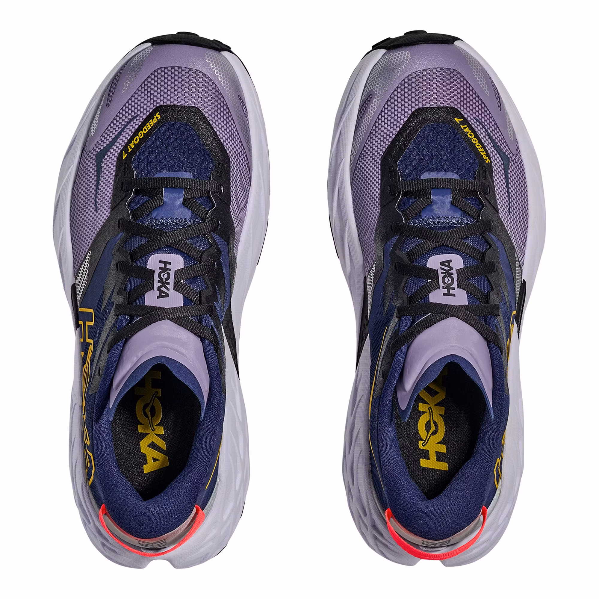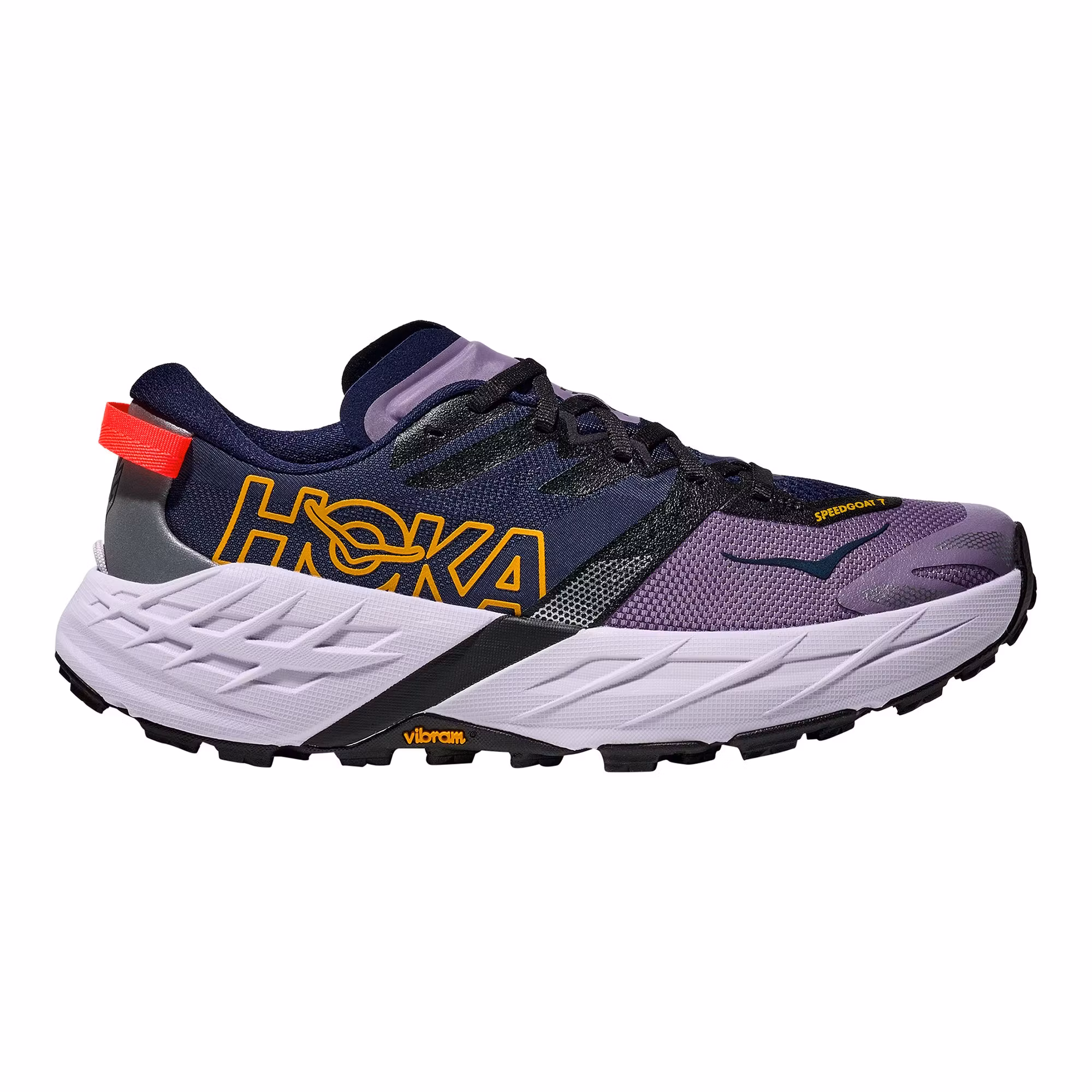 Hoka Speedgoat 7 är en uppdaterad trailsko som är utvecklad för löpning på stig, terräng och tekniskt underlag. Skon har fått en ny mellansula i superkritiskt EVA-skum som ger en mer livlig och följsam löpkänsla, samtidigt som den välkända dämpningen från tidigare versioner finns kvar. Den förbättrade dämpningen bidrar till ökad komfort och bättre respons, vilket gör löpningen mindre tröttande även över längre distanser. Ovandelen är uppdaterad med ett mer slitstarkt och bekvämt material som behåller den trygga passformen från tidigare modeller. Den förbättrade hälkonstruktionen ger ett stabilt fotfäste och ökad komfort runt hälen. Yttersulan i Vibram Megagrip är utrustad med ett optimerat mönster och dubbar som ger mycket bra grepp på både torra och hala underlag. Det gör att skon känns säker och kontrollerad även på tekniska stigar och i kuperad terräng. Speedgoat 7 är en mångsidig trailsko som passar löpare på alla nivåer, oavsett om passen är korta eller långa, lugna eller intensiva.