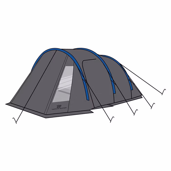 2117 Stugun Familjetält är ett mycket praktiskt tält för 5 personer som är enkelt att sätta upp. Tältet har full ståhöjd inne och i sovrummet finns en praktisk