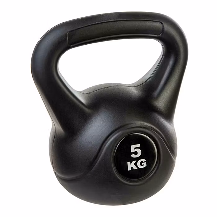 5 kg kettlebell som kan användas för träning av hela kroppen. Kettlebellen är tillverkad i järn, men är klätt i neoprene för att ge bättre dämpning mot golv eller matta.