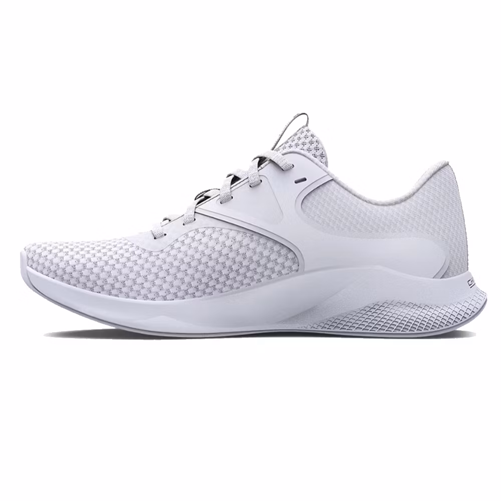 Skon är speciellt byggt för den kvinnliga foten med en strömlinjeformad passform. Ovandelen är i lättviktigt och ventilerande material som svalkar och håller foten torr. Strategiska TPU-överdrag för bättre stabilitet och hållbarhet. Mellansulan är i Charged Cushioning®-dämpning som ger bästa responsivitet och hållbarhet. Den hela gummiyttersulan ger utmärkt kraftöverföring.
